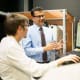 Karunesh Ganguly (right), MD, PhD, discusses ECoG brain recording data with student Stefan Lemke in 2016. Photo by Steve Babuljak